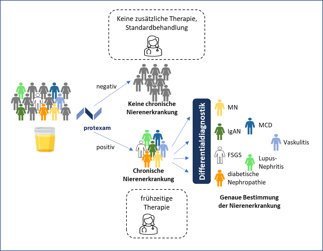 Die Differentialdiagnose chronischer Nierenerkrankungen durch die Proteomanalyse aus Urin kann nicht-invasiv, ohne Nebenwirkungen und sehr präzise erstellt werden.